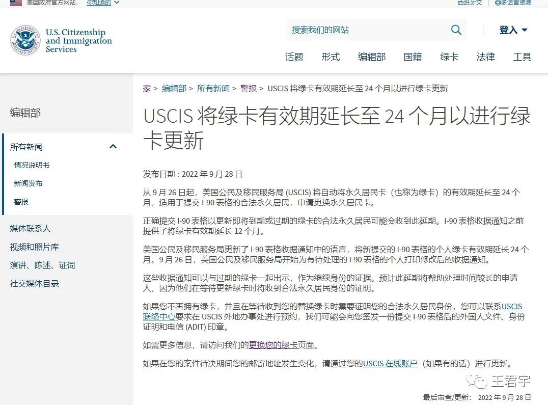 移民局公布更换绿卡等待中的绿卡将有效到24个月|王君宇律师楼