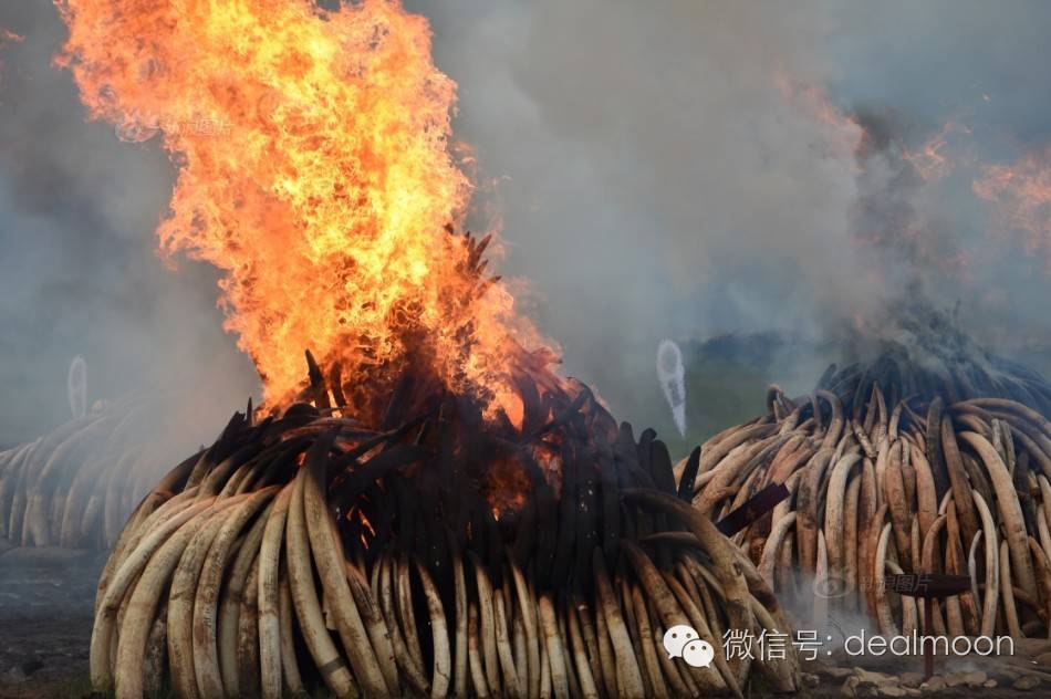 5月1日,肯尼亚总统肯雅塔亲手点燃了收缴的105吨象牙和1.35吨犀牛角,表明该国正式向象牙、犀牛角贸易和盗猎宣战。这次被焚烧的象牙和犀牛角的总价值约为1.8亿美元,总重量和总价值都创造了新的世界纪录。