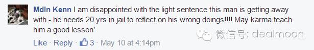 "我对这么轻的判决感到失望,他犯的错值得被判坐20年牢,希望这事能让他得到一个教训。"