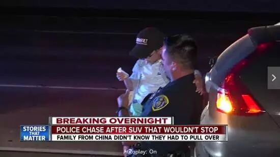 南加州圣地亚哥的警察与中国来旅游的三口之家在高速公路上上演了一场惊魂追逐战,还好最后发现只是个误会,最后以暖心的happy ending 告终啦