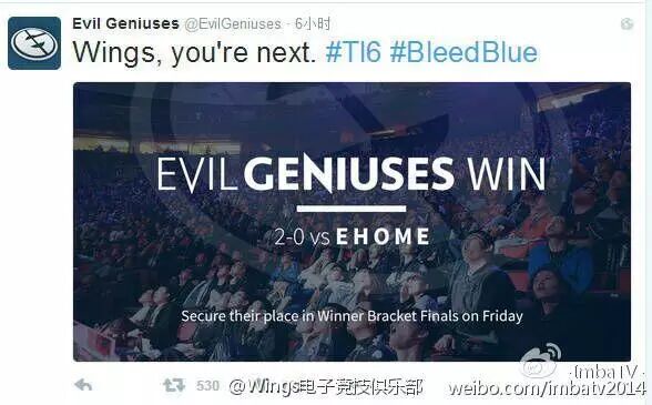 这时,作死的EG又开嘲讽:Wings,下一个2:0就轮到你们了。