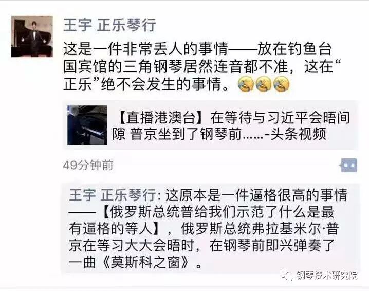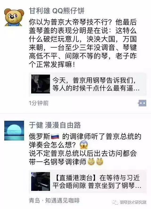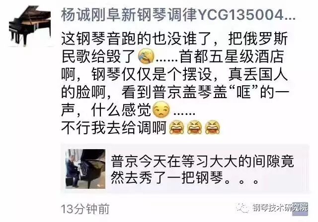 今天早上朋友圈被俄罗斯总统普京在昨日的“一带一路”论坛间隙弹钢琴的视频刷屏,不过刷屏的不是说琴技多好,而是给总统弹的钢琴居然音如此不准,键盘高低不平、间隙不等的钢琴,在首都钓鱼台国宾馆给总统弹的钢琴如此,可见在广大的中小学教室、教堂、宾馆等“摆设”的钢琴,更是如此,值得我们反思、、、、