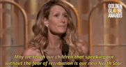 我希望大家不要单单做到支持那些事情的受害者...我们还要保护他们。让我们教育自己的孩子,让他们勇于发声,不用担心被惩罚,这会是我们文化环境中的新北极星。”也感谢里演绎了那么多好的女性形象。