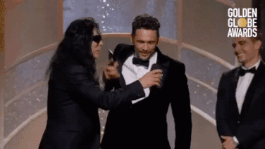 他邀请弟弟戴夫·弗兰科和《灾难艺术家》原型托米·韦素一起上台:“我第一个要感谢托米·韦素。第二要感谢我多年的好友赛斯·罗根,尽管你又怪又宅。最后我要特别感谢我的弟弟,谢谢母亲让你降临在世上。”
