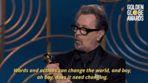 影帝加里·奥德曼的感言,相当俏皮:“(引用丘吉尔名言)我是一个有简单品味的人,最好的就能让我轻易满足。要求不高,只求最好。(他的妻子Gisele Schmidt在台下激动地抹眼泪)感谢妻子,过去一年她忍受着我的疯狂(为演丘吉尔入戏)。她会告诉朋友:‘我和丘吉尔一起入眠,醒过来一看枕边的却是加里·奥德曼。’我想这总比和加里·奥德曼睡,醒过来发现是丘吉尔好吧。”