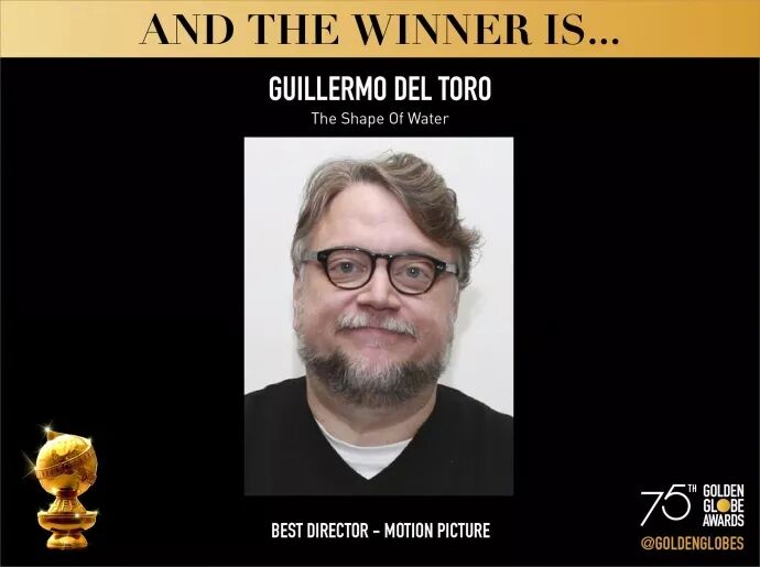 吉尔莫·德尔·托罗凭借《水形物语》获得第75届金球奖最佳导演!这是他首次赢金球奖!也是《水形物语》今晚第二个。