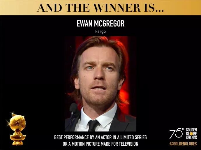伊万·麦克格雷格凭借《冰血暴》获得第75届金球奖限定剧/电视电影最佳男主角!终于赢了一次!