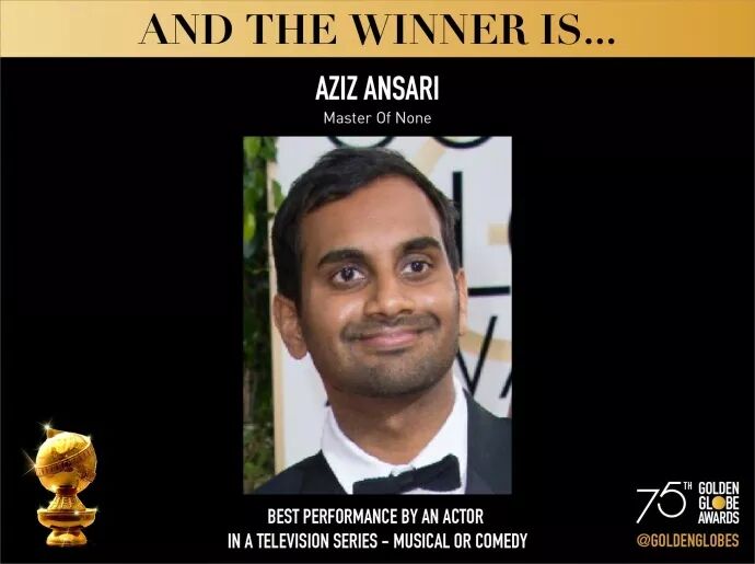 Aziz Ansari凭借《无为大师》获得第75届金球奖音乐/喜剧类剧集最佳男主角!第一次赢哦~