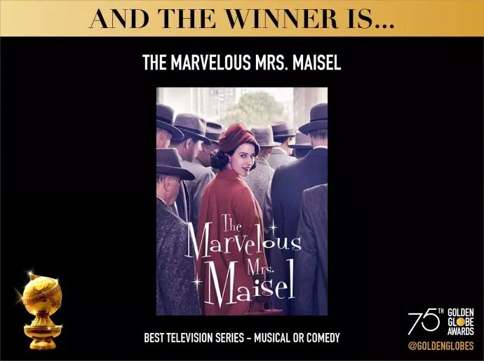 《了不起的麦瑟尔夫人》获得第75届金球奖音乐/喜剧类最佳剧集,今晚赢得第二个。