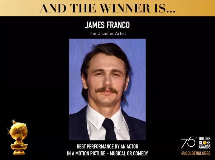 腐兰兰James Franco凭借《灾难艺术家》获得第75届金球#音乐/喜剧电影最佳男主角~