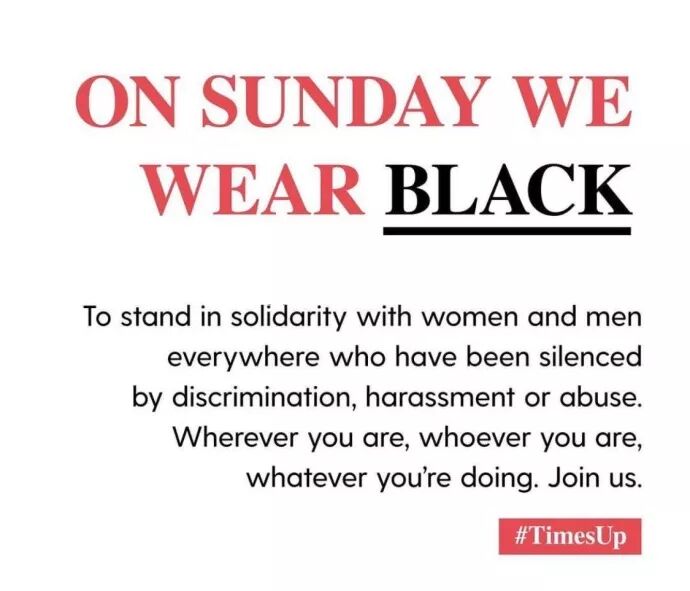 刚刚结束的第75届金球奖颁奖礼红毯上,所有嘉宾都选择身着黑色礼服亮相,以表示对“Time's Up”活动的支持。