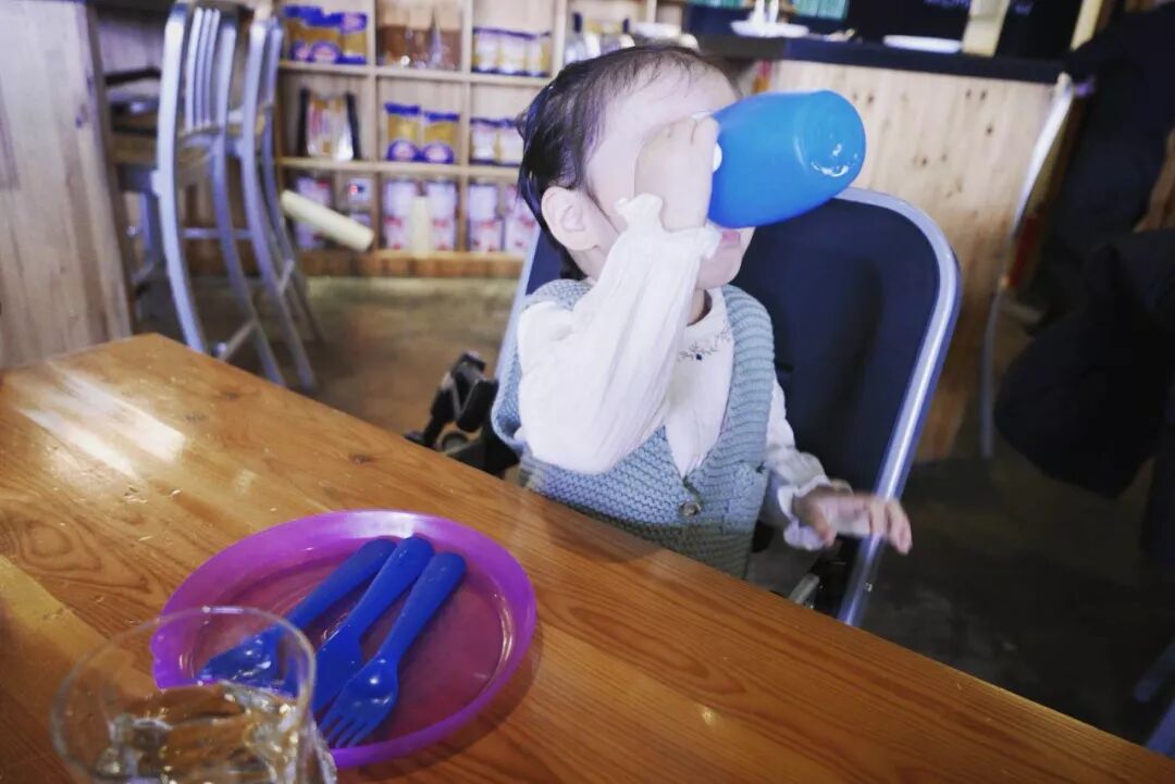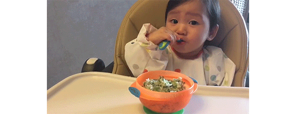刚开始帮她舀起来,由她自己送到嘴里,很快变成完全独立自主进食▼
