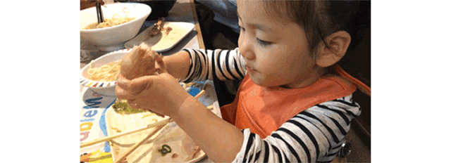 香到什么程度呢?这是一个她一岁半的时候跟我们在东京的民宿里吃饭的视频。视频里她吃得酣畅淋漓最后连菜汤都喝光的那盘菜,其实就是放了一丁点油炒出来的青菜和豆芽,没有放任何调味料,连盐都没有▼