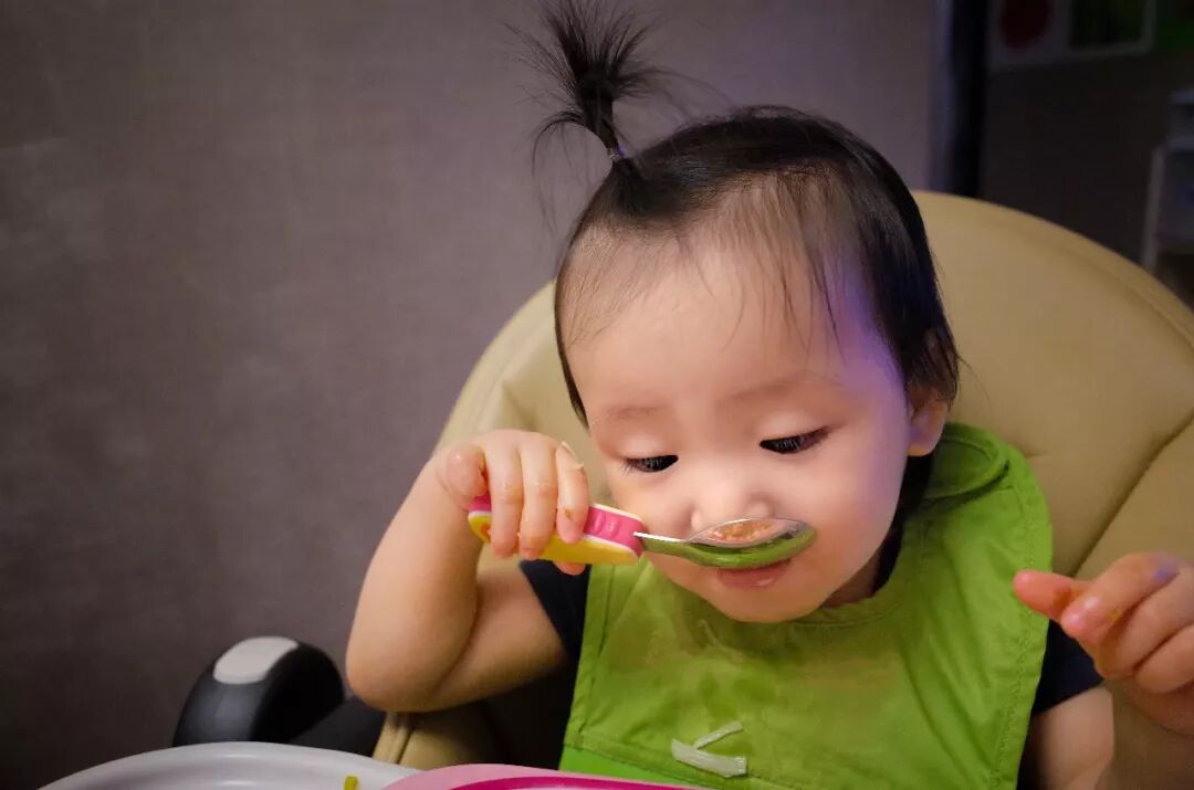到了9个多月她学会用勺子和叉子之后,就彻底告别了勺喂▼