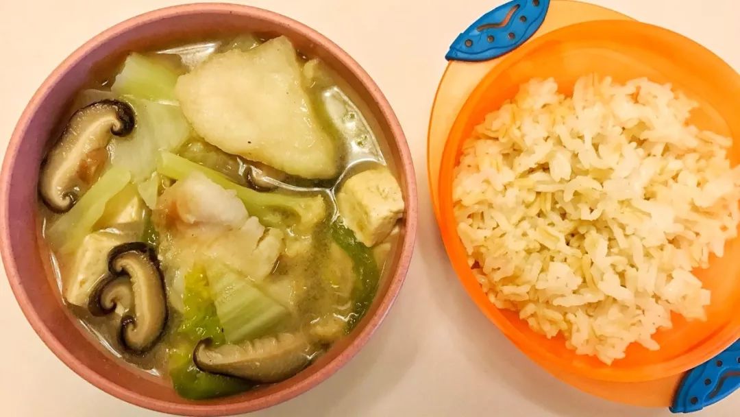 鳕鱼蔬菜汤+米饭。鳕鱼两面稍微煎一下,煮个汤,放些蔬菜进去▼