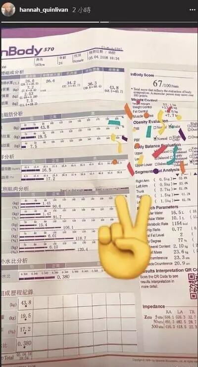 视频中的昆凌正在瑜伽垫上努力的锻炼,之后她还晒出一张体测表,上面显示她身高163,体重43.8,体脂肪率居然才17.2%(小编觉得女生体脂还是不要太低哦,保持在不低于19就好啦),这样的数据真的是一分耕耘一分收获啊,看来,大搜也绝对跟周杰伦一起买奶茶喝呢!