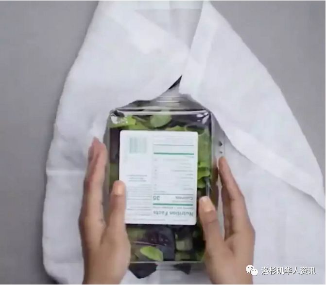 2、将干布或纸巾包裹完全包裹好蔬菜,重新装入包装盒中