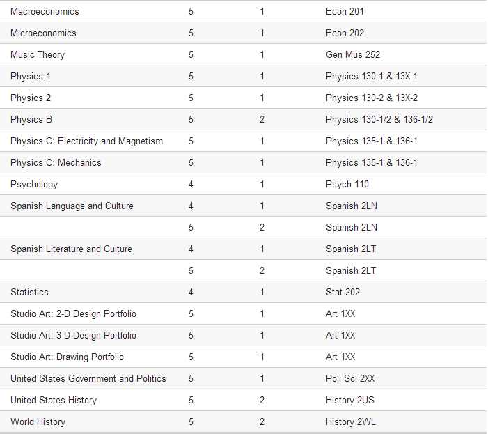 各大学AP抵学分政策不同,以下是CB官网公布的美国各大高校AP换取学分政策,主页菌把Top30学校的政策给大家截图出来,大家根据自己的实际情况有针对性地备考。