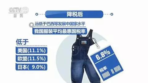 服装鞋帽、厨房和体育健身用品等进口关税平均税率由15.9%降至7.1%;