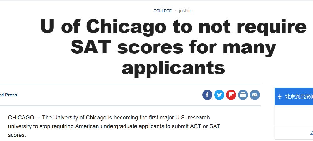 今年申请季开始的时候,很多学校都更新了招生政策。芝加哥大学本科招办主任Jim Nondorf 宣布,申请2019年及以后入学的本科生不需要提交SAT或者ACT成绩。随后,哈佛、哥伦比亚等美国名校纷纷宣布,明年开始取消SAT/ACT考试。