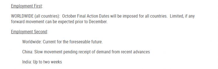 近日美国移民9月最新排期表公布!作为美国职业移民第一优先的EB-1进入全球排期时代!这是历史上从来没有出现过的情况。