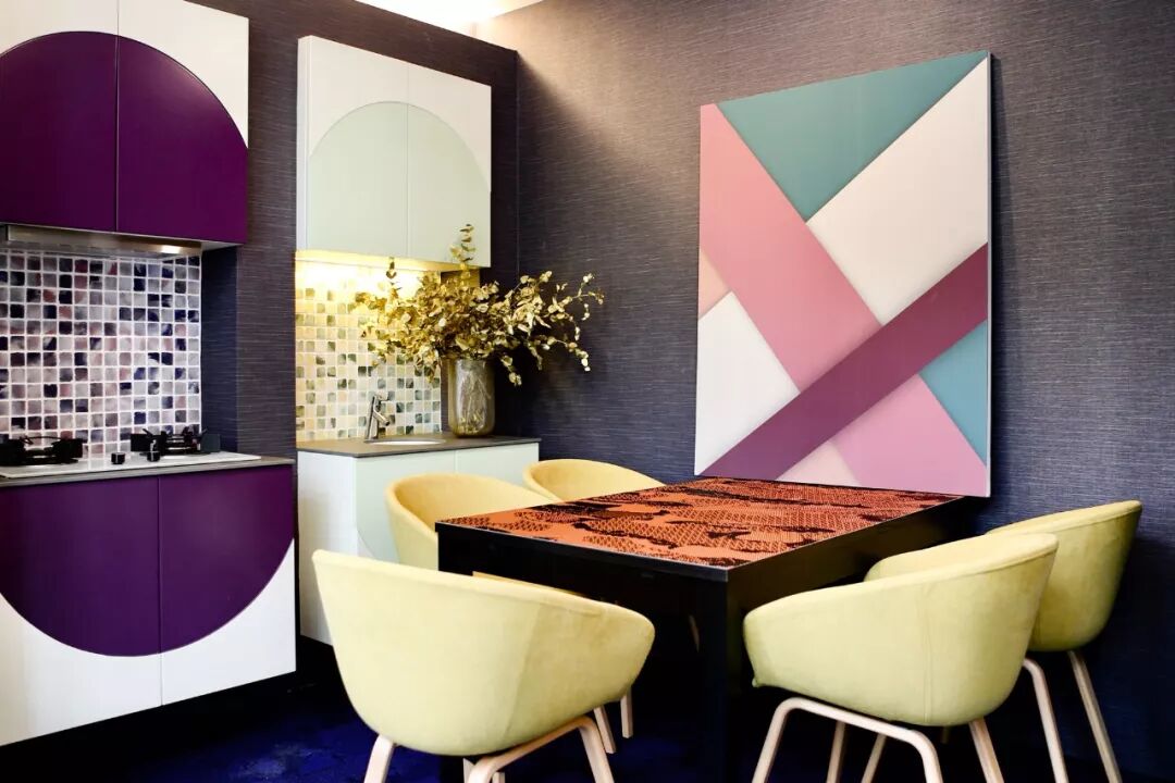 颜色的选择上,我很大胆地使用了饱和度高的绿色和紫色,这两种颜色其实是时装里面经常用的颜色,在室内设计中却很冒险,是一般的家庭很难接受的色彩搭配,我却很喜欢。