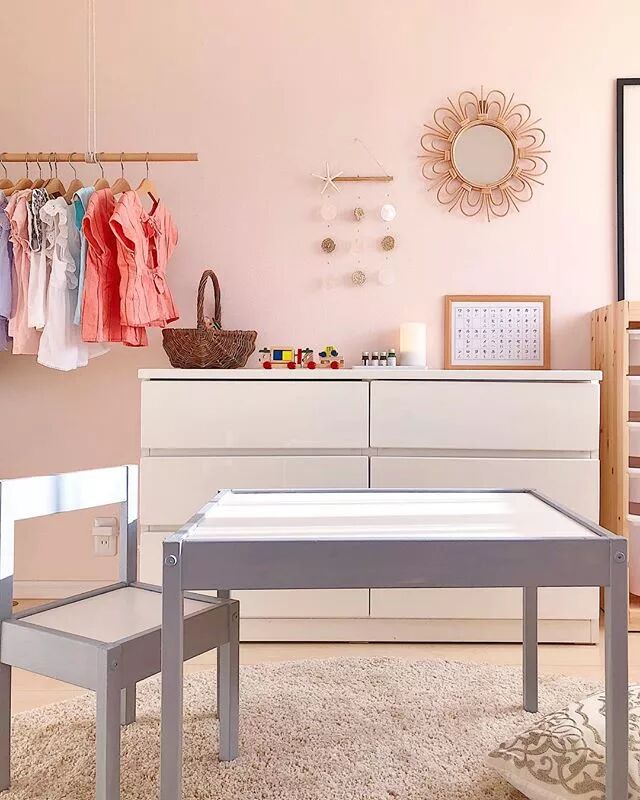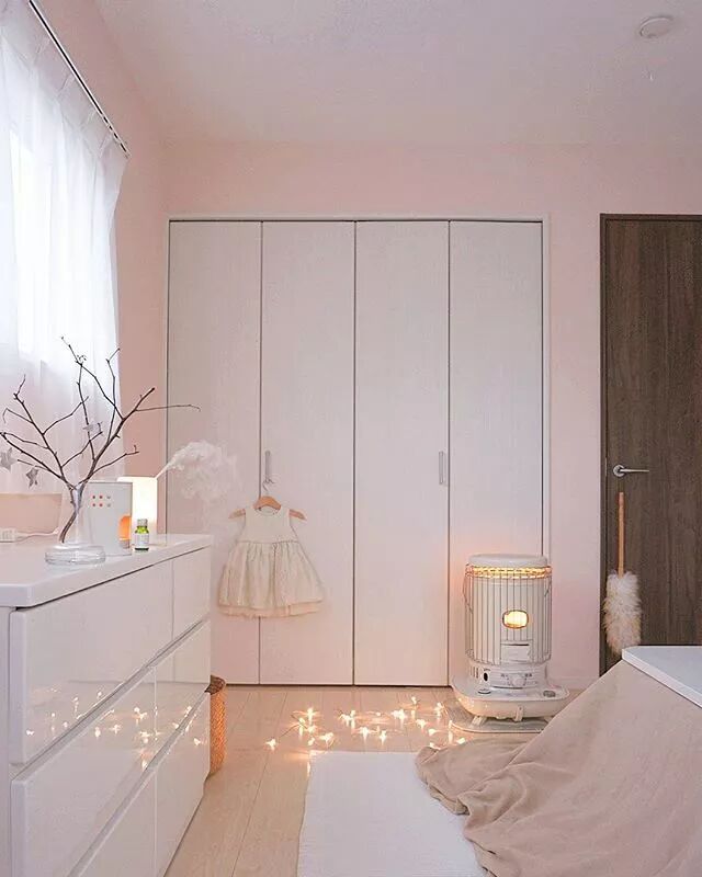 女儿卧室的墙壁刷成了浅粉的奶油色