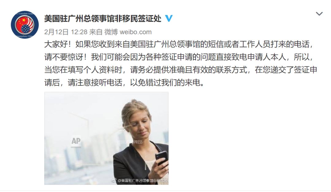 前几日,美国驻广州总领事馆非移民签证处发布了一条微博,让很多人都惊讶!美国大使馆竟然开始给申请人打电话了......