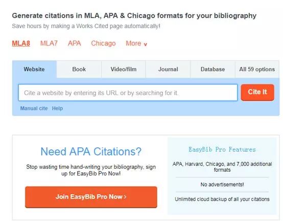 到了美国之后,写Paper之前第一件事就是学习如何写文献。不管你的教授要求你的Citation是MLA还是APA格式,这个网站都能帮你搞定。你只需要输入你要引用的网站,图书或者是视频等等,然后选择自己需要的格式,这个网站就会帮你自动生成。