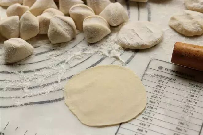 然后擀成为中间厚边缘薄的饺子皮,如果不擅长擀面,直接买超市现成的也可以~