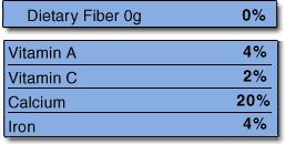 通过这张表格,可以在购买商品时快速做出选择,比如在减脂、脱脂、淡味牛奶之间比较,只要看每种食品中总脂肪的%DV(摄入量百分比)就可以。
