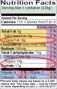 不含脂肪Fat free | 脂肪少于0.5克,没有脂肪成分 |