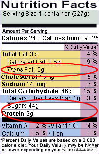 除了标签上通用的格式描述,商家还经常在包装上标出一些营养素的含量描述,比如free(无添加)、Low(低含量)、reduced(减少含量)之类的词语。