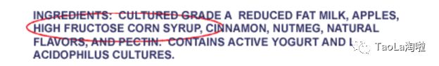 水果酸奶的成分列表中标有高果糖玉米糖浆syrup,营养成分标签上列出了44克糖,这就是添加糖。