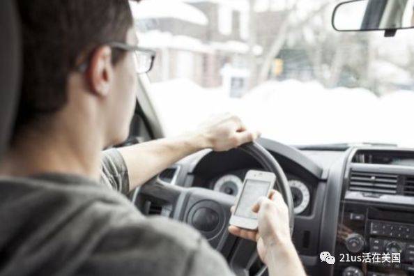 华人来美持中国驾照开车,被罚无证驾驶。图为一名驾驶开车时正在看手机,非当事人。