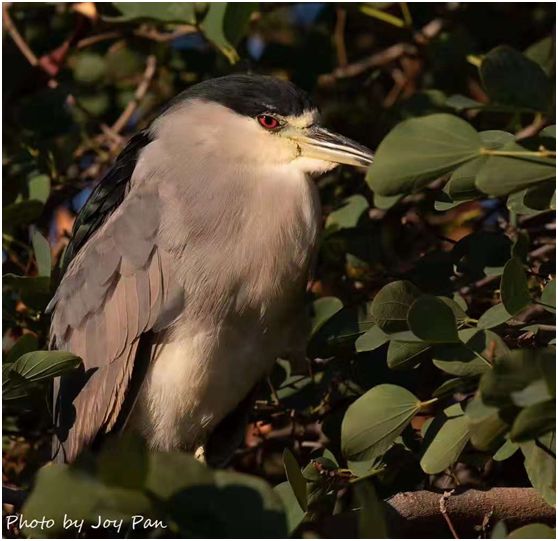 那红色大眼睛似乎始终睁得溜圆,警觉,天色渐亮,夜鹭回到高树丛里歇息,我也随着晨练人们的脚步放缓节奏。