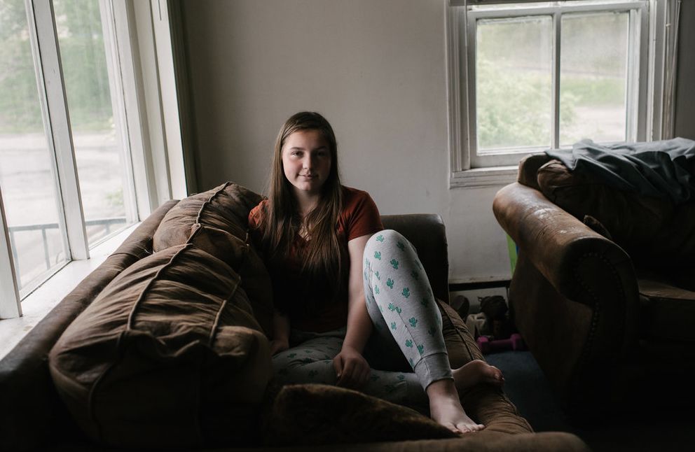 维多利亚·奥斯瓦尔德坐在她文章中描述的沙发上。她将就读哈佛大学。