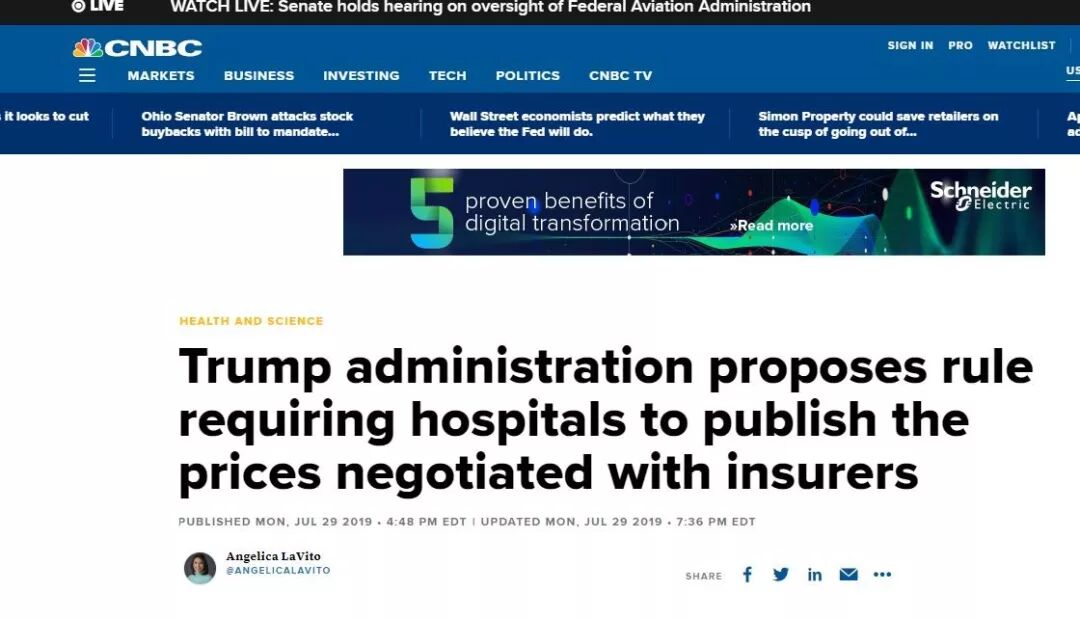 在6月下旬签了行政令之后,7月30日,川普总统正式宣布一条新规:从2020年1月1日起医疗所有费用透明化!!!