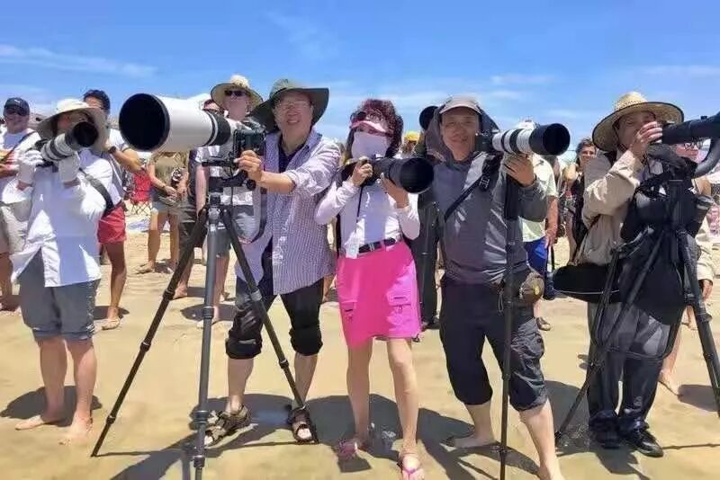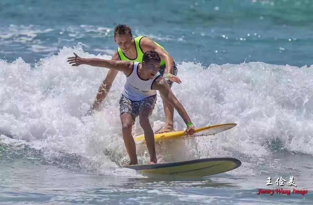 中午拍摄,海面上竟然有冲浪人的倒影;