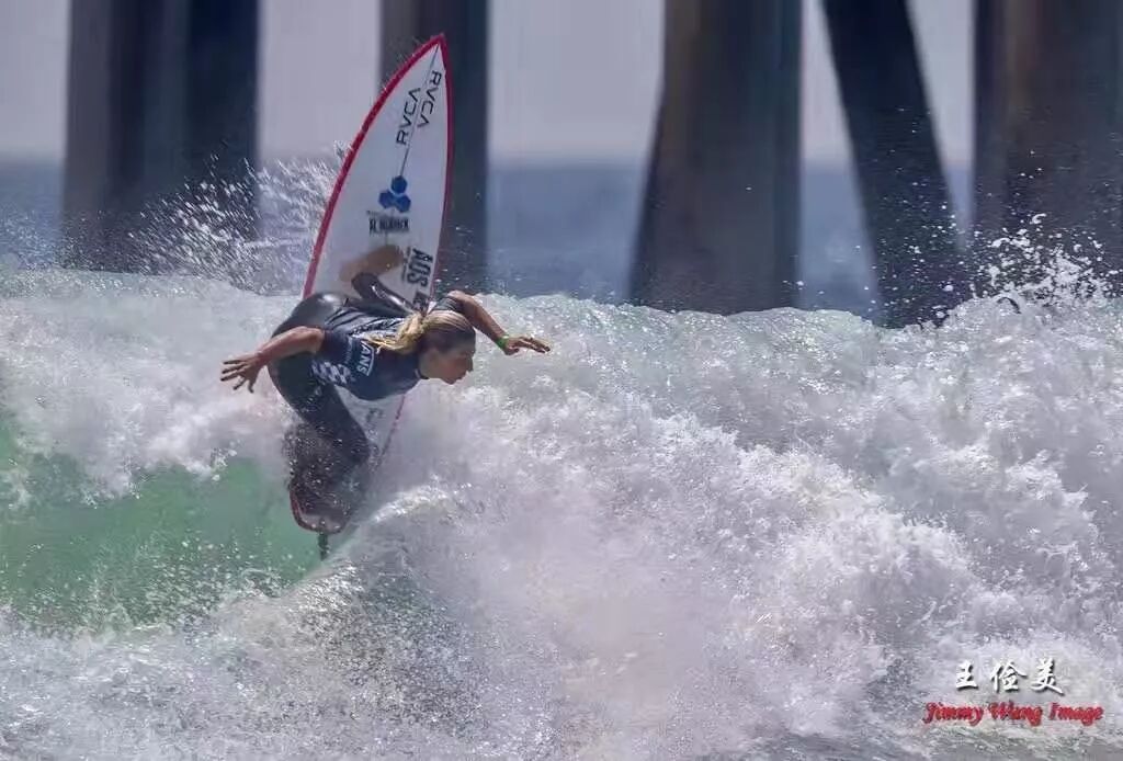 本次美国冲浪公开赛女冠军留下的最终靓影。