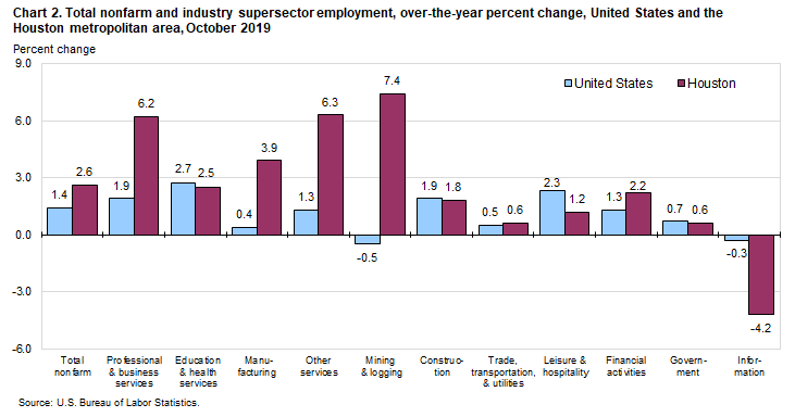 需要注意的是,2018年10月至2019年10月期间当地的信息行业就业率全年下降4.2%,也远高于全国平均水平。