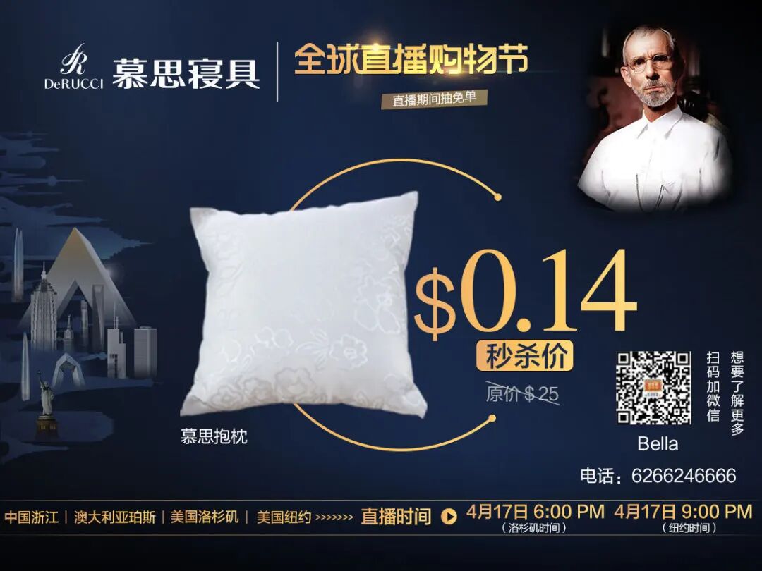 慕思精美抱枕原价$25,现进入直播间$0.14