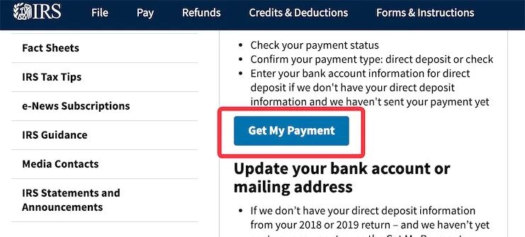 IRS已经上线了一个名为“Get My Payment”的在线工具,您可以到那里输入您新的银行账户信息。但这只对之前没有2018或2019年退税账户或IRS还未处理补助金的人才有用。