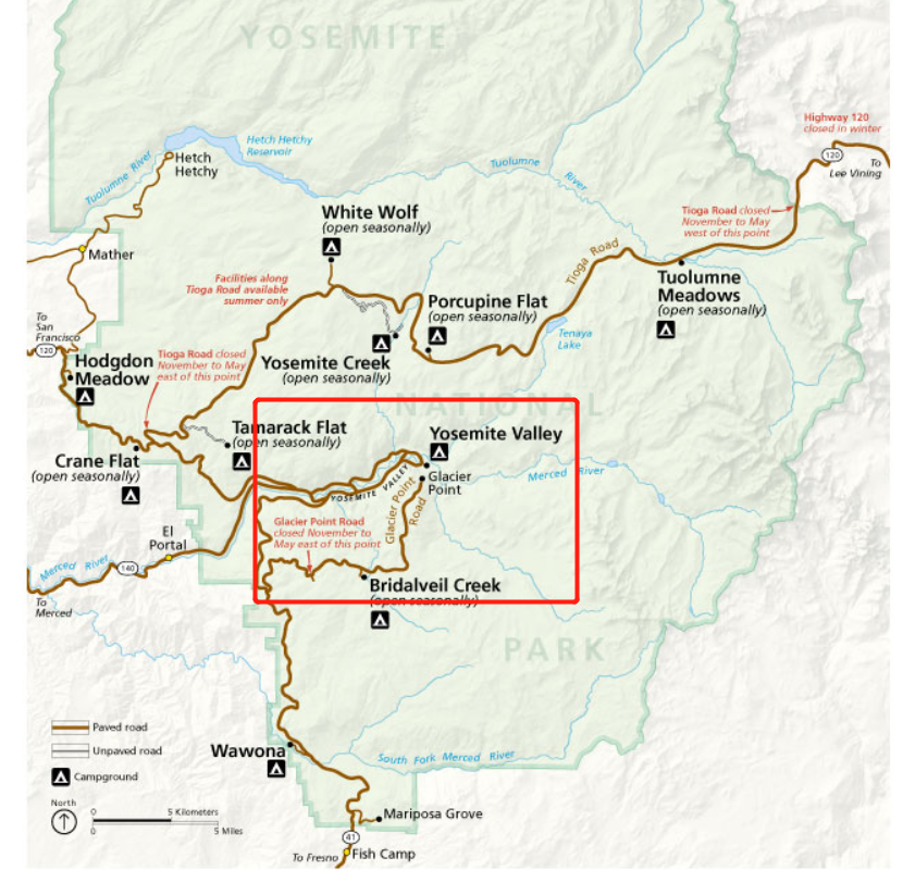 优胜美地全年开放,可以从从西部经41、140和120号公路进入。Tioga Pass入口(从东部通过120号公路)从11月左右至5月下旬或6月关闭。Hetch Hetchy全年开放,但由于下雪可能会间歇性关闭。需要注意的是,进入山区地形手机信号很差,务必带一个GPS导航,找到准确的路线。