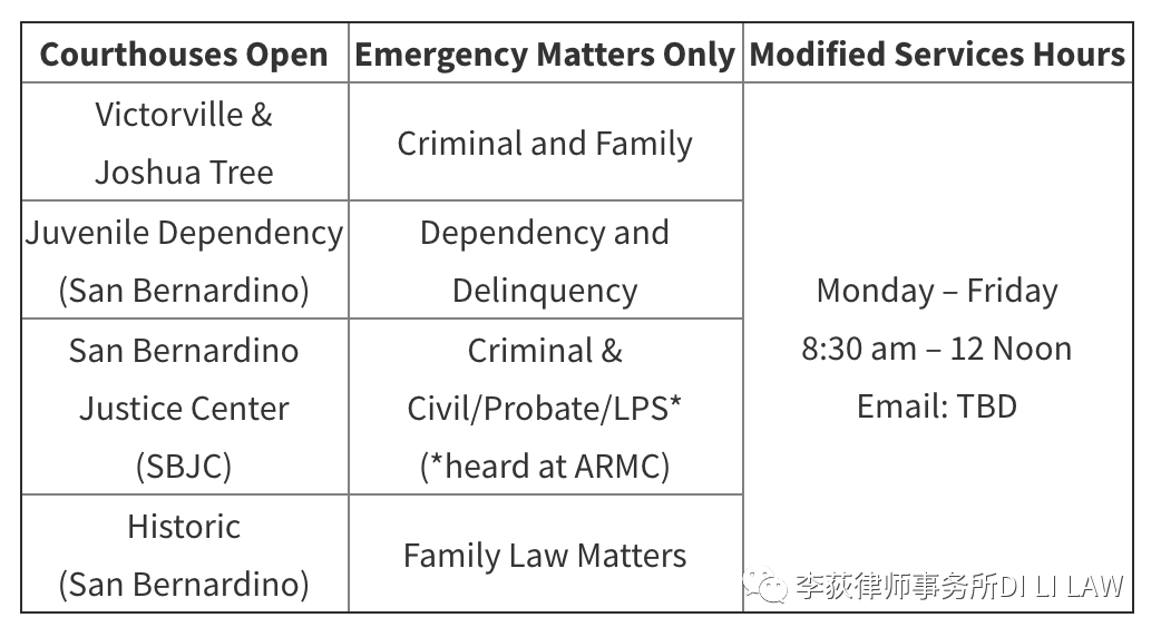 其他相关信息请见该法院官网:https://www.sb-court.org/general-information/covid-19-courthouse-closure-and-hearing-information