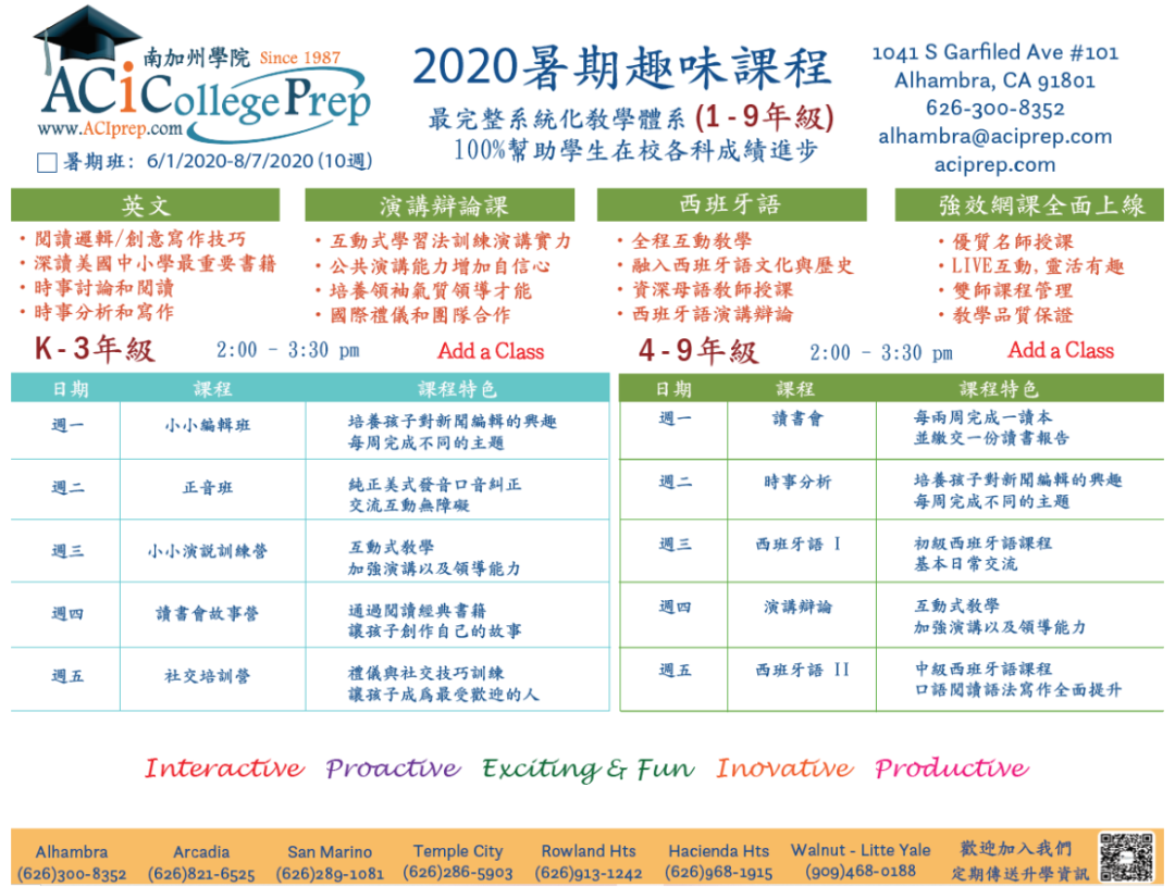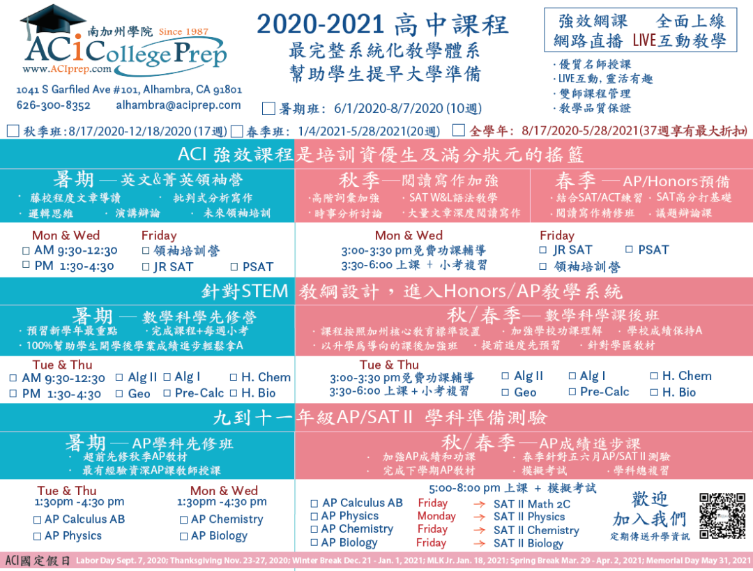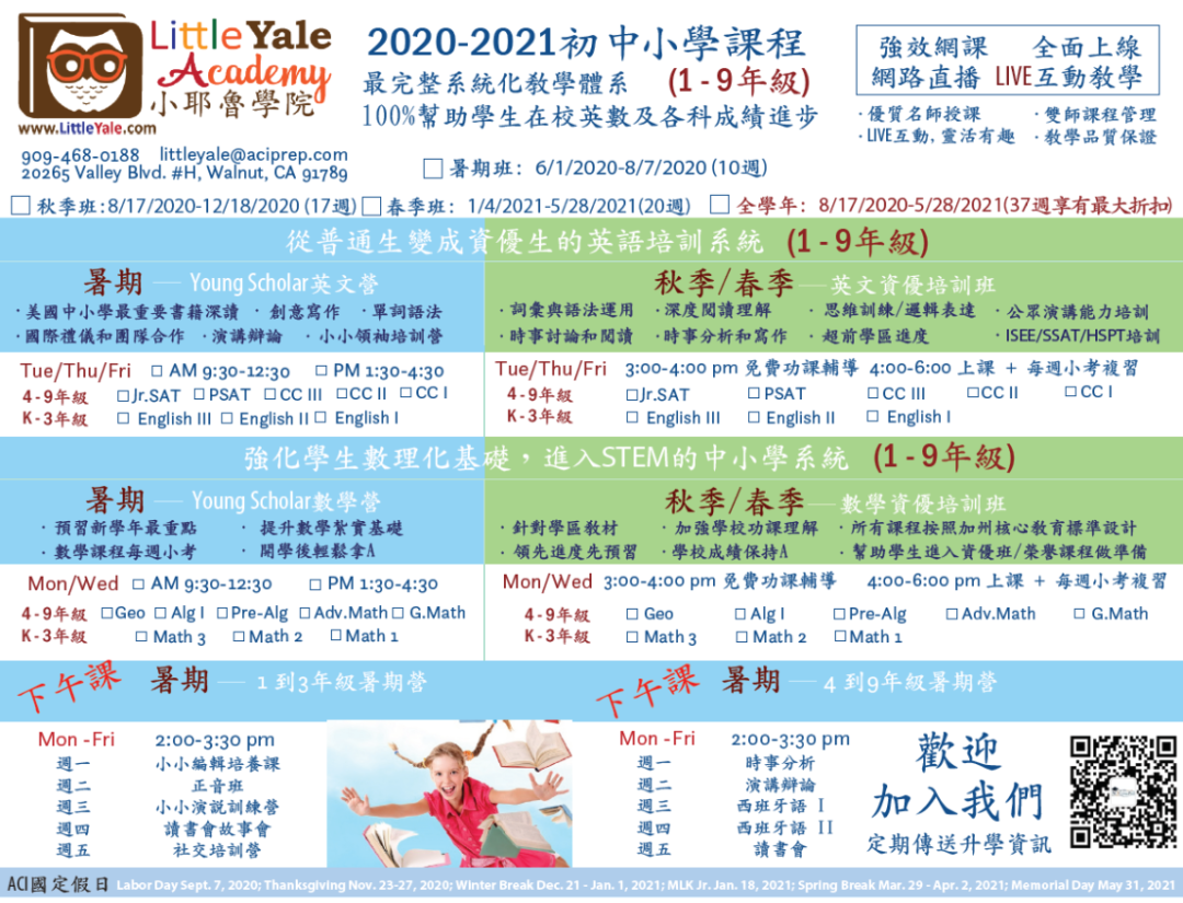 SAT I-II高分班、PAST閱讀寫作班、學童課後英數班、TOEF/ESL英文班