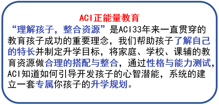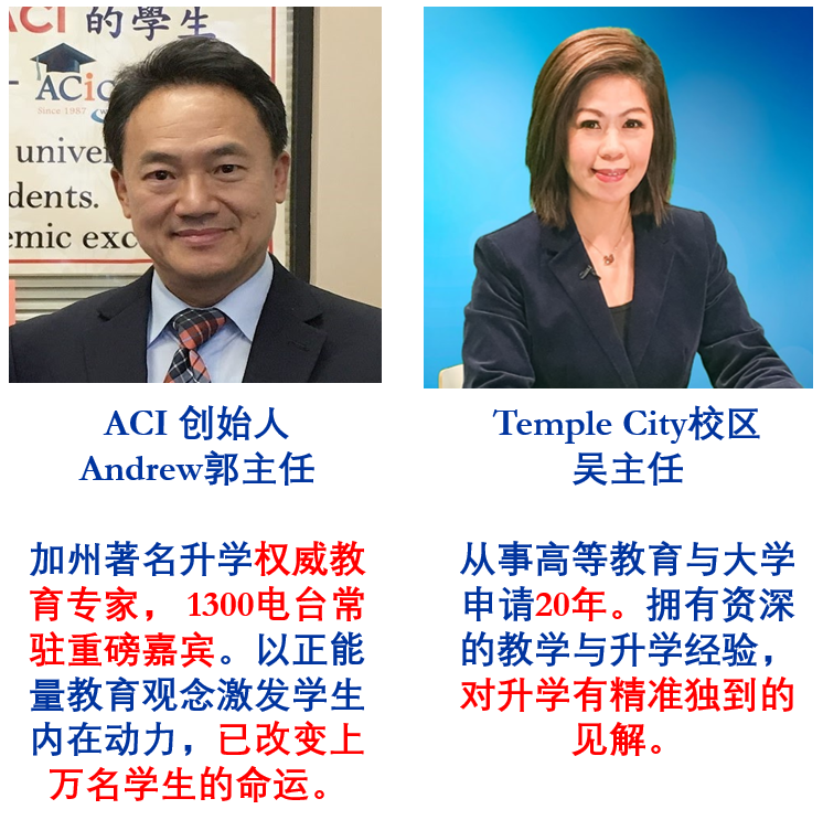 大学申请中,招生官除了审核你的硬实力,包括GPA,SAT/ACT等等,他们还将综合考察你的软实力,包括推荐信与面试。完美结合你的硬实力与软实力,让招生官能够认识真正的你,对于大学录取至关重要。本期升学讲座(周四,5/14 6:30 pm), ACI创始人郭主任,与拥有资深升学经验的ACI天普市校区吴主任,将与您谈谈大学申请中的推荐信与面试。
