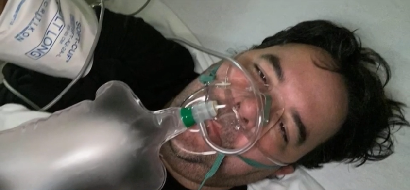 约翰出现症状的第四天,病情严重恶化。他呼吸困难,整个人几乎已经不能动了。米歇尔立刻把他送到了附近的一家医院,结果那家医院的急诊室里,挤满了各种咳嗽、发烧的人。约翰在高烧的情况下,坐在满是病人的急诊室里等了整整5个小时,才终于看上医生。医生给他拍了X光片子,发现他肺部已经感染了,出现了肺炎,于是让他立即住院。