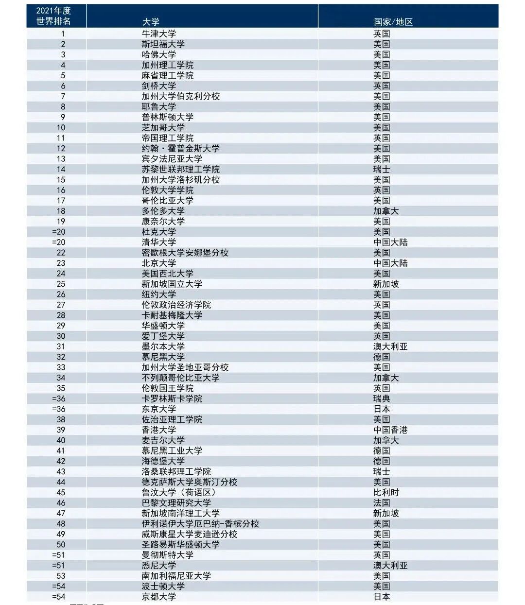 2021年度泰晤士高等教育世界大学排名涵盖了来自93个国家/地区的1527所大学,是迄今为止涵盖大学数量最多的一次。英国牛津大学连续5年蝉联第一。