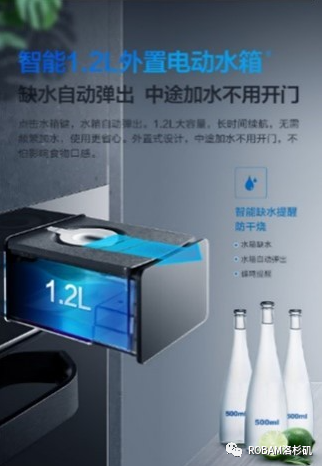 顶部不滴水,蒸的更美味:老板1.2L特殊外置电动水箱,及时排出废蒸汽,并补充新鲜蒸汽,并且设有烹饪过程中缺水自动提醒功能,中途加水也不用打开门,不仅有效防止热量散失,而且操作更方便,无需人现场盯着。